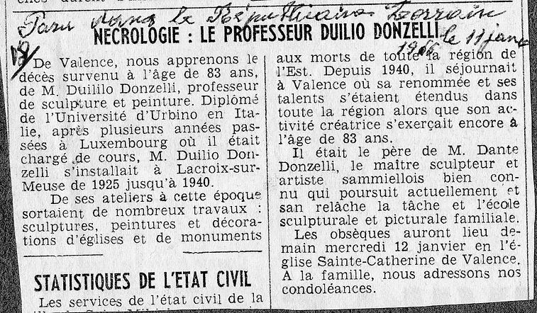 Le 9 janvier 1966 est décédé en son domicile 20 allée de l’Epervière Duilio Donzelli